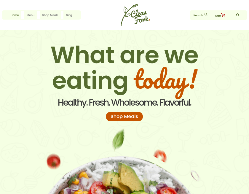 CleanFork is a healthy meal service platform offering fresh, flavorful dishes with calorie-labeled options, fast delivery, and easy online ordering.