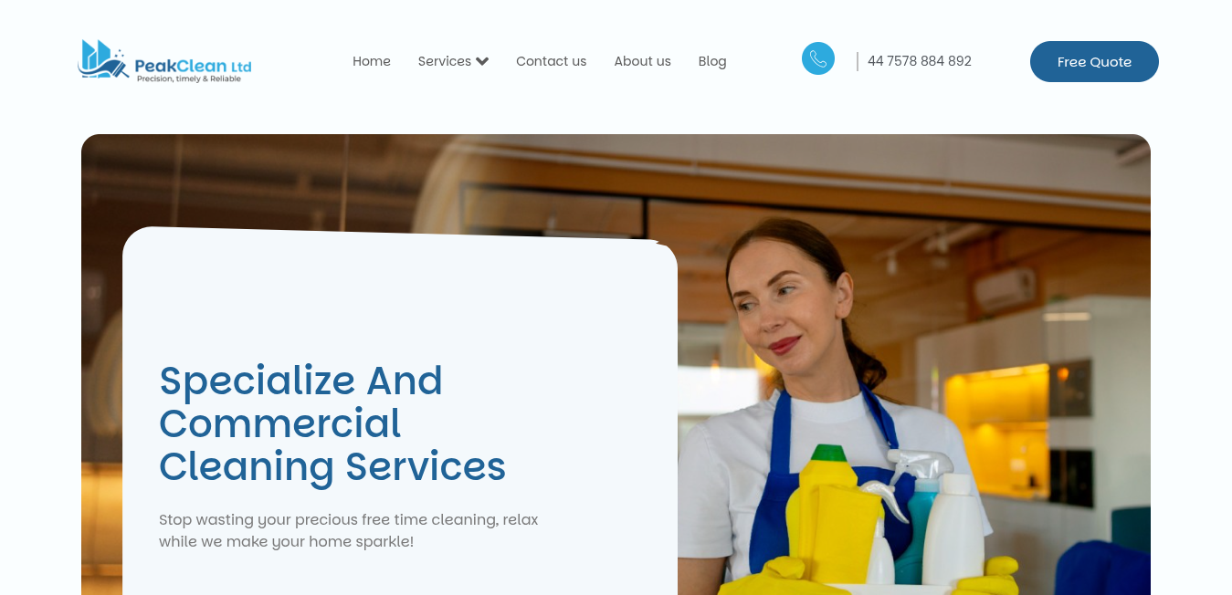 Peak Clean Ltd is a UK-based cleaning company dedicated to giving clients more free time through exceptional cleaning service. Users can explore various offerings, get instant quotes, and learn more about the mission and values.